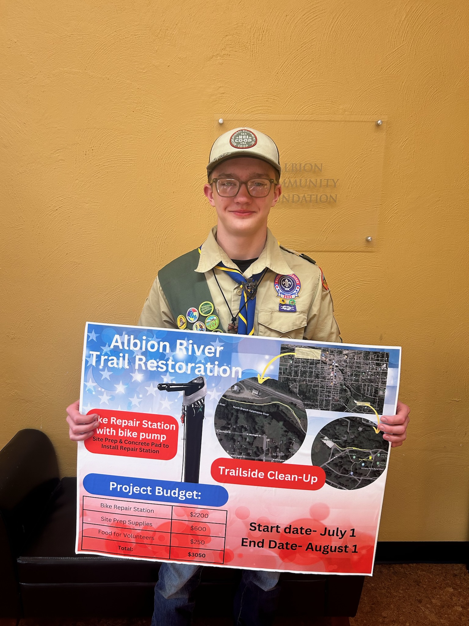 Scouting America is a national program providing leadership, character building, and community service through hands on work with an emphasis the outdoors. A part of Scouting is earning the rank of Eagle Scout, it’s the highest rank of the program with only one in four Scouts achieving it. When becoming an Eagle Scout, the youth must complete an “Eagle Scout Project”. This project is meaningful to the Scout and helpful to the community. It is a way for Scouts to also practice their leadership skills. In 2024, two Scouts from Albion’s Troop 158 completed their projects: Americus Hawkey and Ian Verbeke.