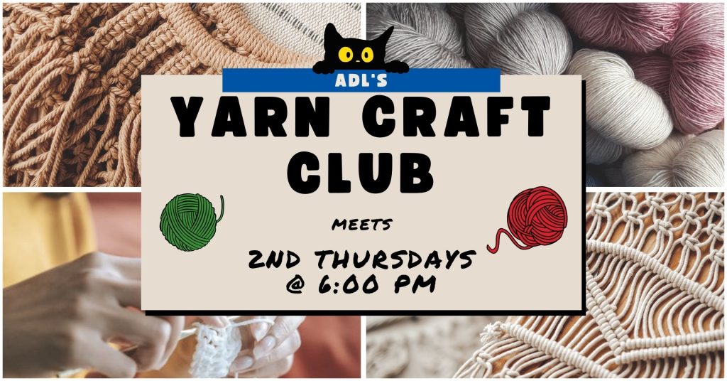 Join the knitters at Stirling Books & Brew monthly from 4-5:30pm on the first and the third Wednesday of the month. For more information, contact Beth Lincoln at blincoln@albion.edu.