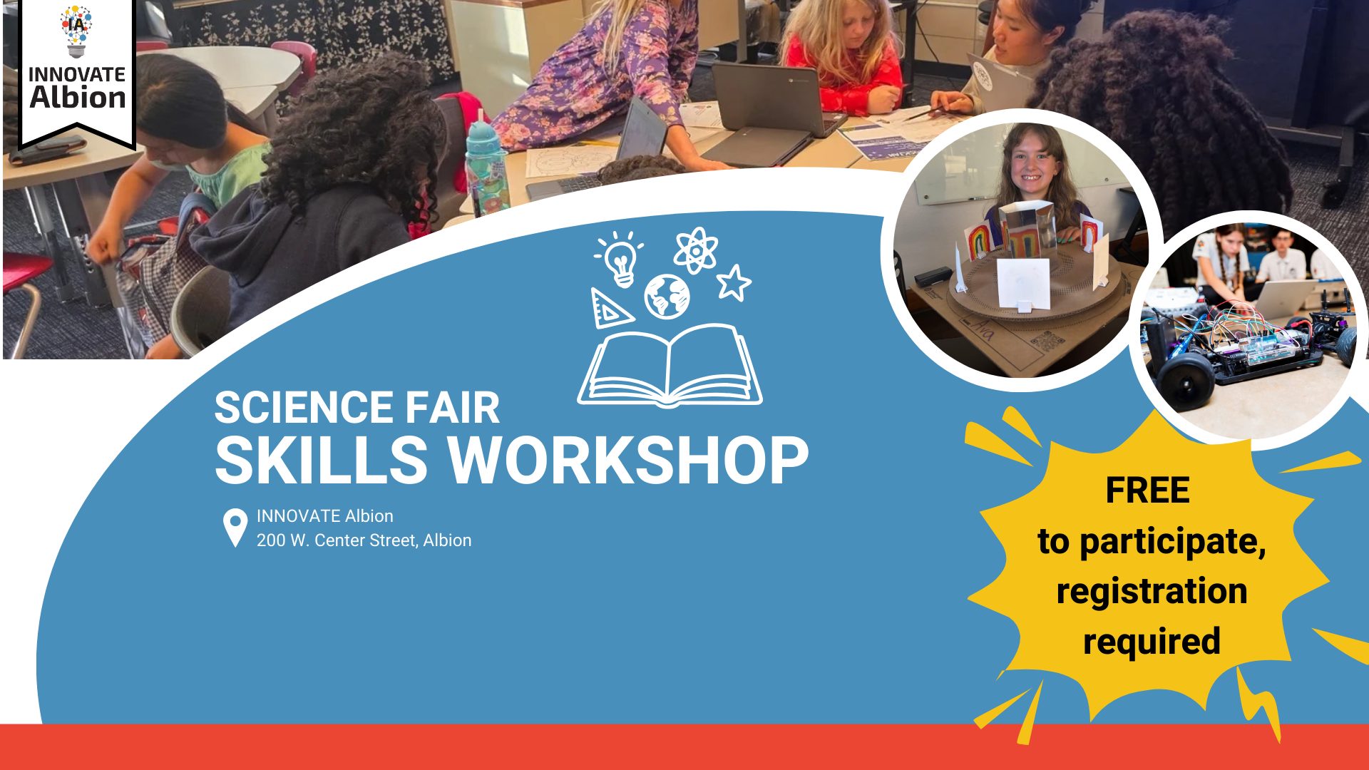 INNOVATE Albion is hosting a Community Science Fair and we're hosting four workshops to help students prepare and complete their own science project. The Science Fair and all four workshops are open to students in K - 8th grade. Parent attendance with students at the workshop is required. Registration is FREE but it is REQUIRED. […]