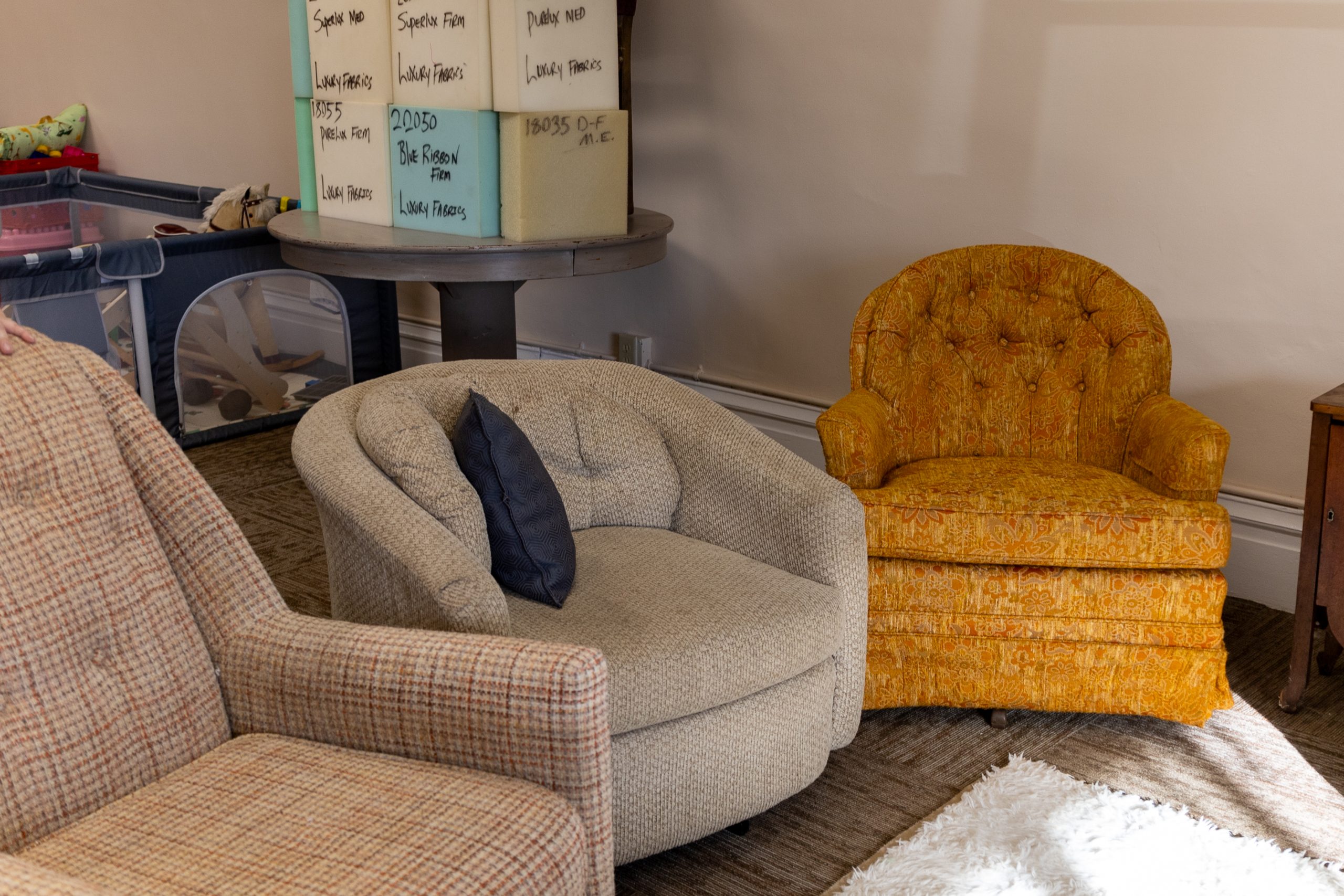 Now, Sellers services are available at a store front! Through a lot of labor and materials, Sellers is here to bring life back to your old furniture. Her favorite part of her work is bringing someone’s vision to life. Currently, Up & Up Upholstery is open Monday, Tuesday, Thursday, Friday 9AM – 2PM, Wednesday 9AM – 1PM, and appointments on the weekends.